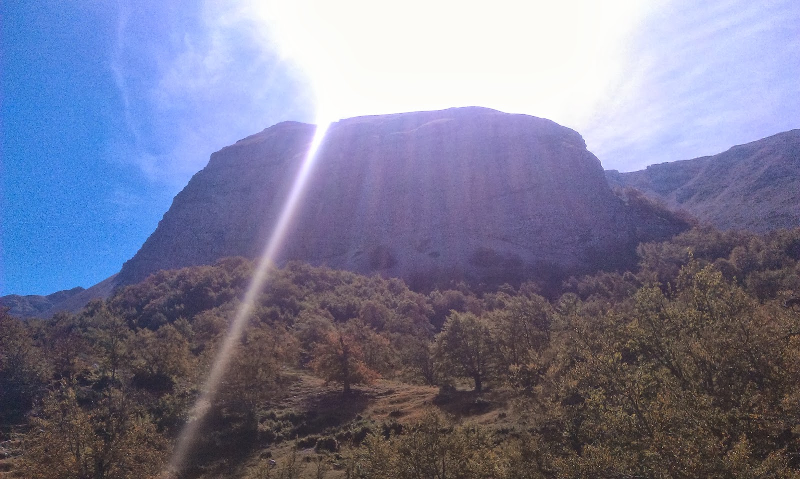Partenza da Rosciolo (Santa Maria in Valle); fontana di Sevice; Monte Sevice (2355) ; cima del Velino (2487 m).Ritorno per la Valle di Teve